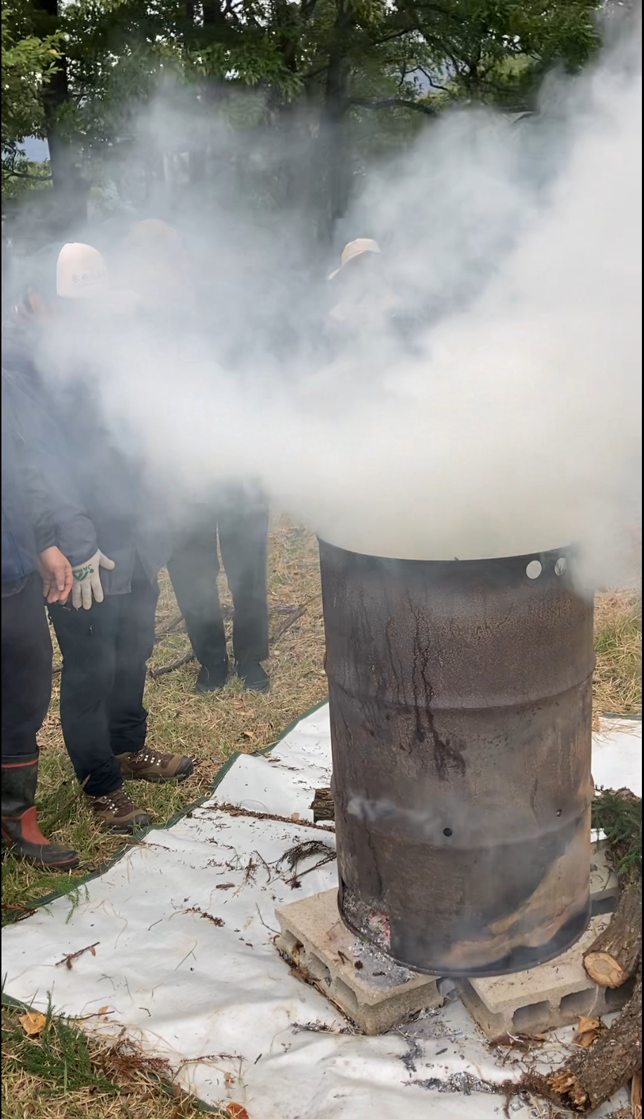 狼煙リレー 2025.06.12 今年も千曲市内の4城合同で、狼煙リレーを行いました。 参加した山城は昨年と同じ、新山城、荒砥城、小坂城、そして屋代城の4城。 屋代城から見える荒砥城、小坂城はまっすぐ綺麗に煙が上がっていましたが、遮蔽物のない平地に半島の様に独立している屋代城では、山頂を抜ける強い風の影響で飛行機の翼の様に煙が山肌に沿って下に流れてしまって、失敗でした。 昔の人々はこんな時どうしていたんだろう?と考えながら、次回以降の良い教訓になった今回のイベントでした。